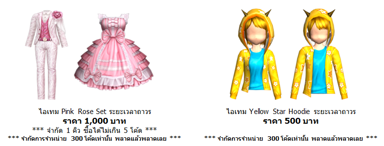 • เริ่มเปิดขายไอเทม เวลา 10.00 น. – 13.00 น.เท่านั้น