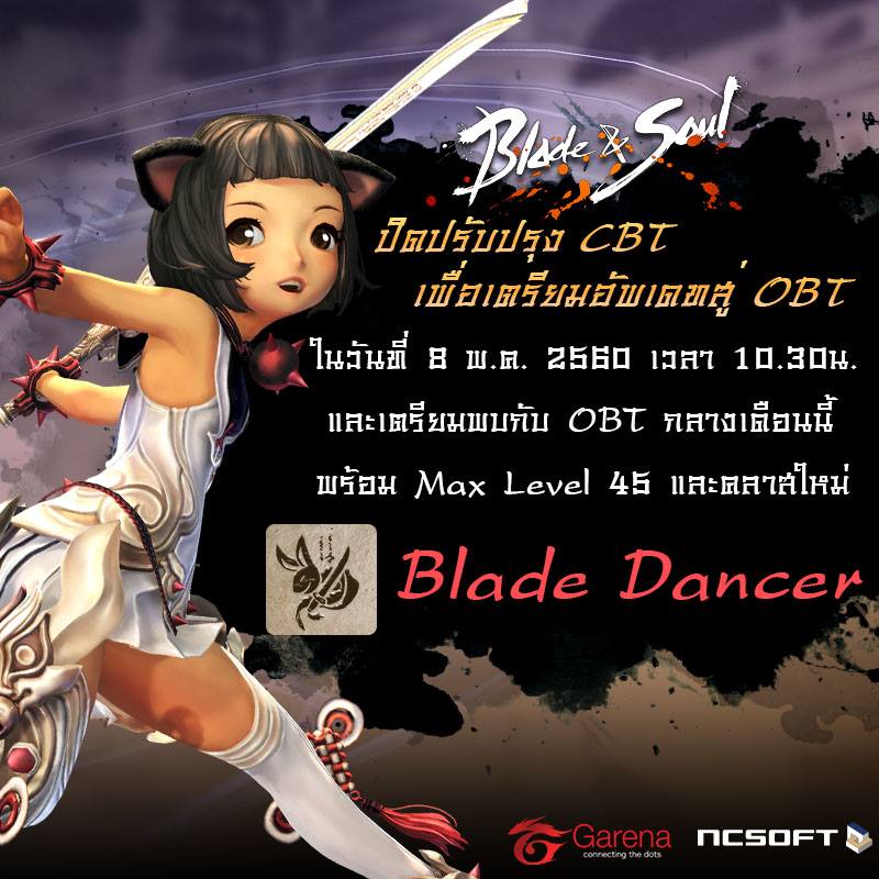 Blade&soul สุดยอด MMORPG ที่เกมเมอร์ไทยรอคอยมาอย่างยาวนาน โดยทาง Garena เป็นผู้ให้บริการในประเทศไทย หลังจากที่เปิดทดสอบ CBT ตั้งแต่วันที่ 1 - 8 พฤษภาคม ก็สร้างกระแสเกมออนไลน์ MMORPG ในบ้านเราให้กลับมาคึกคักอีกครั้งหลังซบเซามานานเพราะมีผู้ที่สนใจเข้าร่วมทดสอบกว่า 300,000 คน แถมเมื่อมีการแจกสิทธิ์เพิ่มก็หมดภายใน 1 วันเลยทีเดียว โดยตอนนี้ทีมงาน Garena ก็ได้ทำการปิดเซิร์ฟเวอร์ทดสอบเรียบร้อยแล้วเมื่อเวลา 10.30 น. ที่ผ่านมา