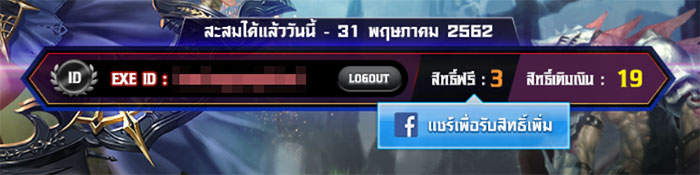 ► เมื่อผู้เล่นออนไลน์ครบ 1 ชั่วโมง จะได้รับสิทธิ์ในการสุ่ม Feather egg โดยสามารถสะสมได้วันละ 3 สิทธิ์ และเมื่อแชร์จะได้รับอีก 1 สิทธิ์ (สามารถออนไลน์ติดต่อกันมากกว่า 3 ชั่วโมงแล้วออกมารับสิทธิ์ครั้งเดียวได้)