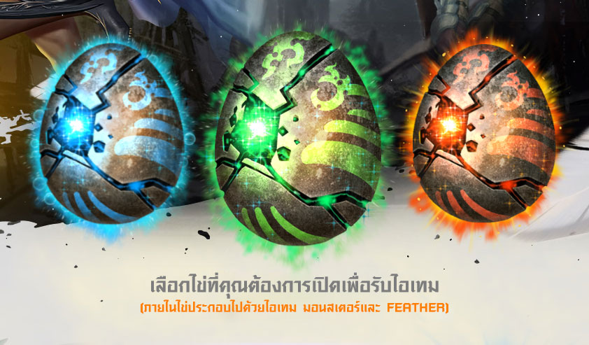 ► หากผู้เล่นเปิดไข่เจอมอนสเตอร์ร้าย จะไม่ได้รับไอเทม และ Feather