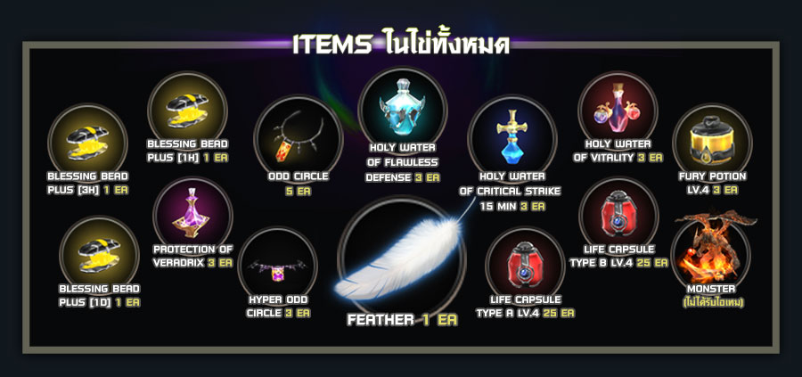► หากผู้เล่นเจอไอเทมที่อยู่ใน Feather Egg ไอเทมจะถูกส่งเข้า Cash Inventory ทันที
