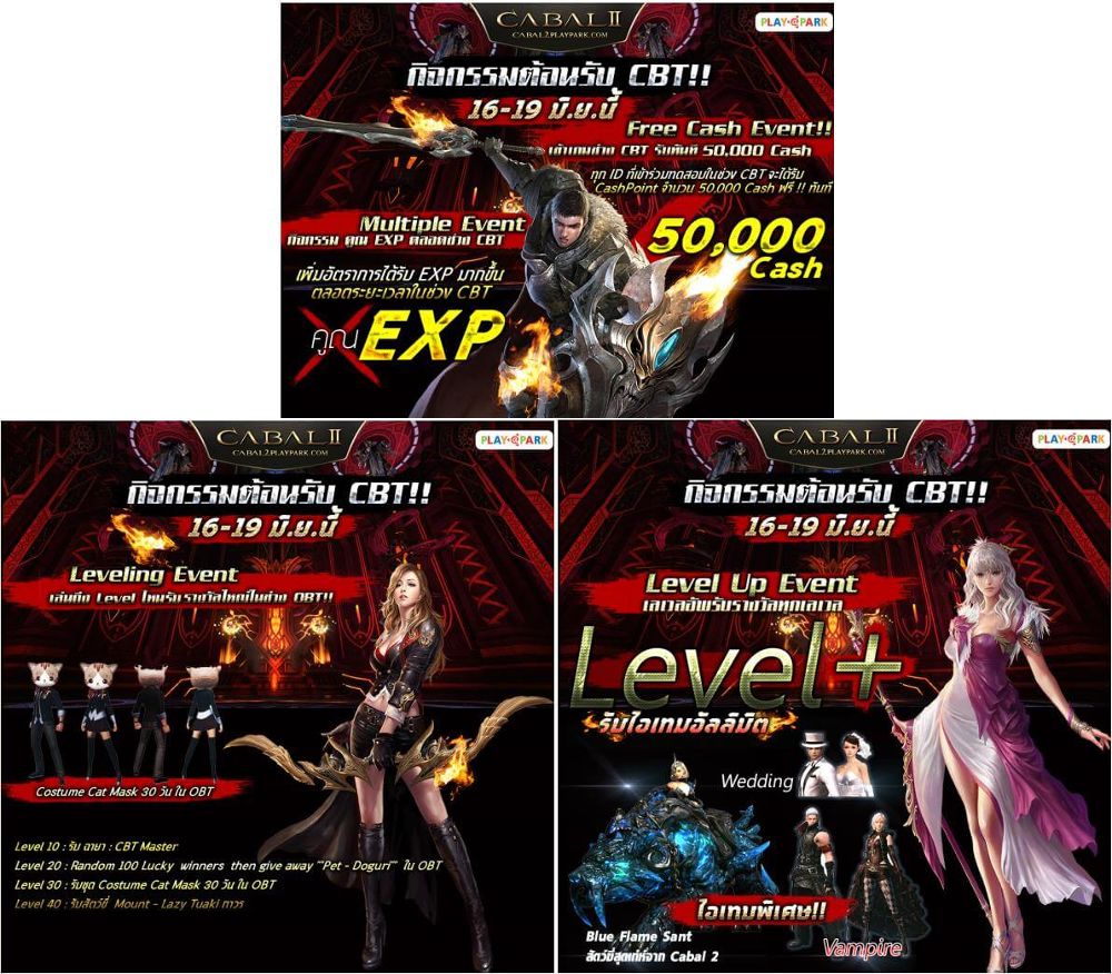 เพื่อเป็นการต้อนรับเหล่านักรบ CABAL2 ทางทีมงานใจดีจัดเต็มแจกจริงกับกิจกรรมต้อนรับ CBT 16 - 19 มิ.ย. นี้ เตรียมตัวล่าไอเทมกัน ของรางวัลเพียบ ห้ามพลาด!! ดูรายละเอียดกิจกรรมได้ที่นี่>> CABAL2 กิจกรรมต้อนรับCBT