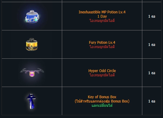 สำหรับรางวัลภายในกล่องสุ่ม Gift Box จะมีไอเท็มต่างๆ มากมาย ที่สามารถสุ่มได้แรร์ไอเท็มมากมาย โดยเฉพาะ