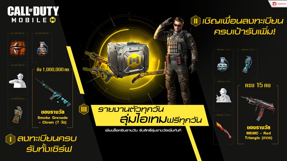 หลังจากประกาศเป็นทางการเมื่อช่วงเดือนเมษายนที่ผ่านมาว่าบริษัท การีนา ออนไลน์ จำกัด (ประเทศไทย) ได้สิทธิ์ในการเป็นผู้ให้บริการเกม Call of Duty Mobile ในวันนี้ ทางการีนาก็มีประกาศว่าตัวเกมได้เปิดให้ลงทะเบียนล่วงหน้า เพื่อรับไอเทมพิเศษแล้วเรียบร้อย