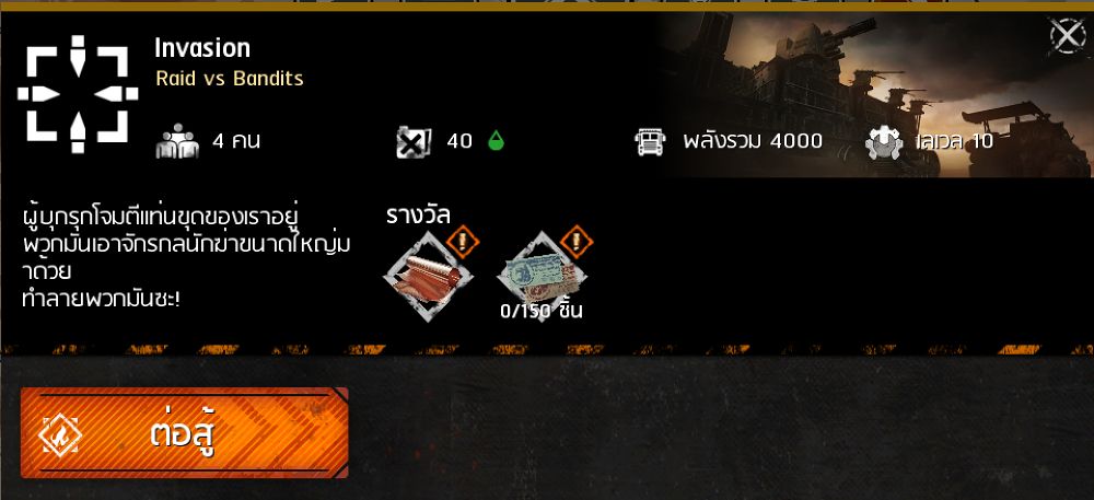 - ระยะโจมตีสูงสุดของปืนกลและปืนเล็ก + 5 %