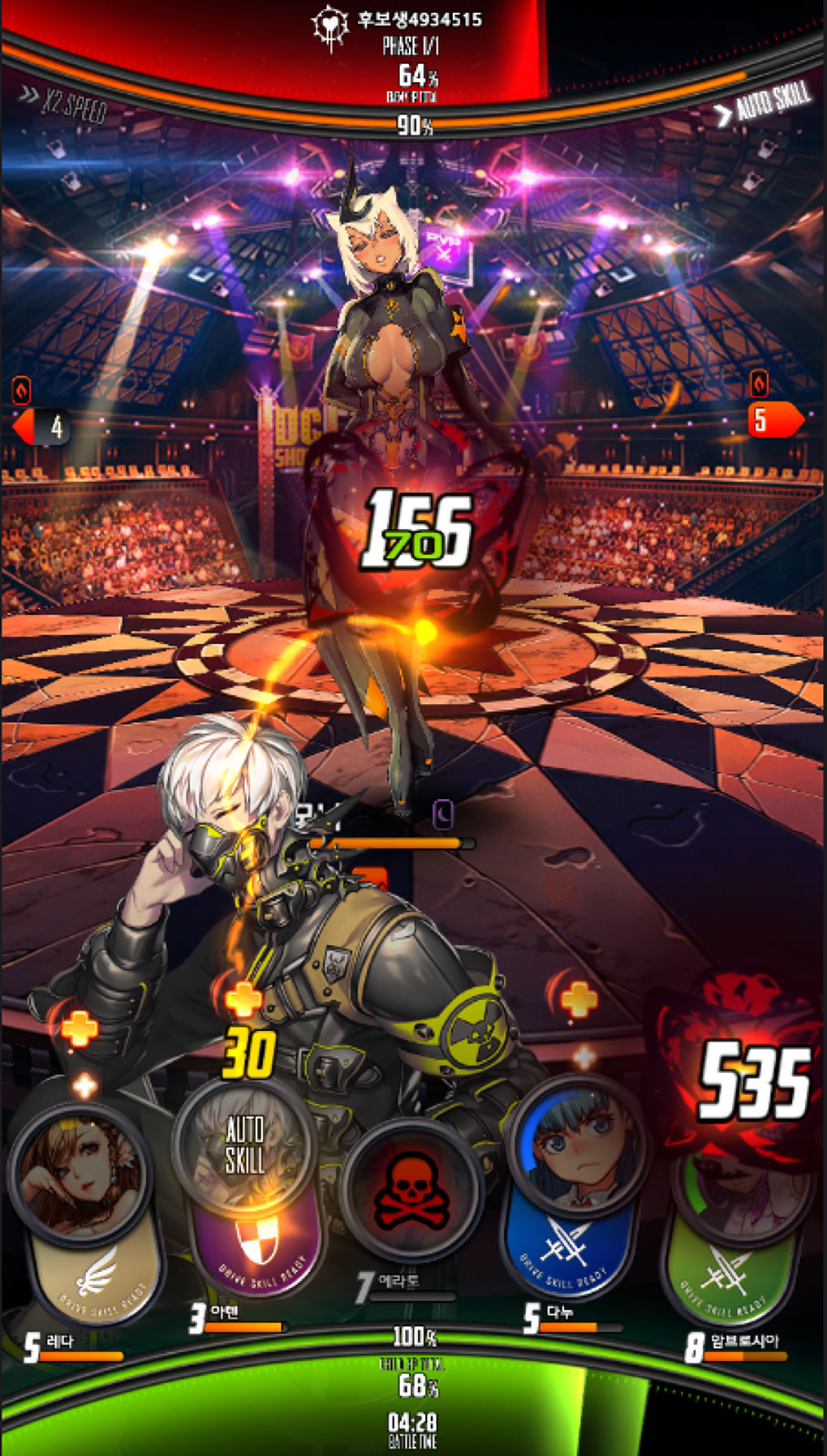 ภายในการต่อสู้ เราจะได้ฟอร์มทีมขึ้นมาซึ่งจะประกอบไปด้วยตัวละคร 5 ตัว และใน 5 ตัวนี้จะมีตัวละครตัวหนึ่งที่เป็นหัวหน้าของทีมสำหรับการต่อสู้ภายในเกม ตัวละครของเราจะทำการโจมตีใส่ศัตรูให้อย่างอัตโนมัติโดยตัวเราจะเป็นผู้ควบคุม และเลือกใช้สกิลเท่านั้นทั้งนี้หากใครคิดว่าการควบคุมตัวละคร 5 ตัวมันจะดูเยอะเกินไป ทางเกมก็มีระบบ “Auto Skill” รองรับไว้ให้อีกด้วย เพียงแต่ว่า DriveSkill เราจำเป็นต้องสั่งใช้เองเท่านั้น