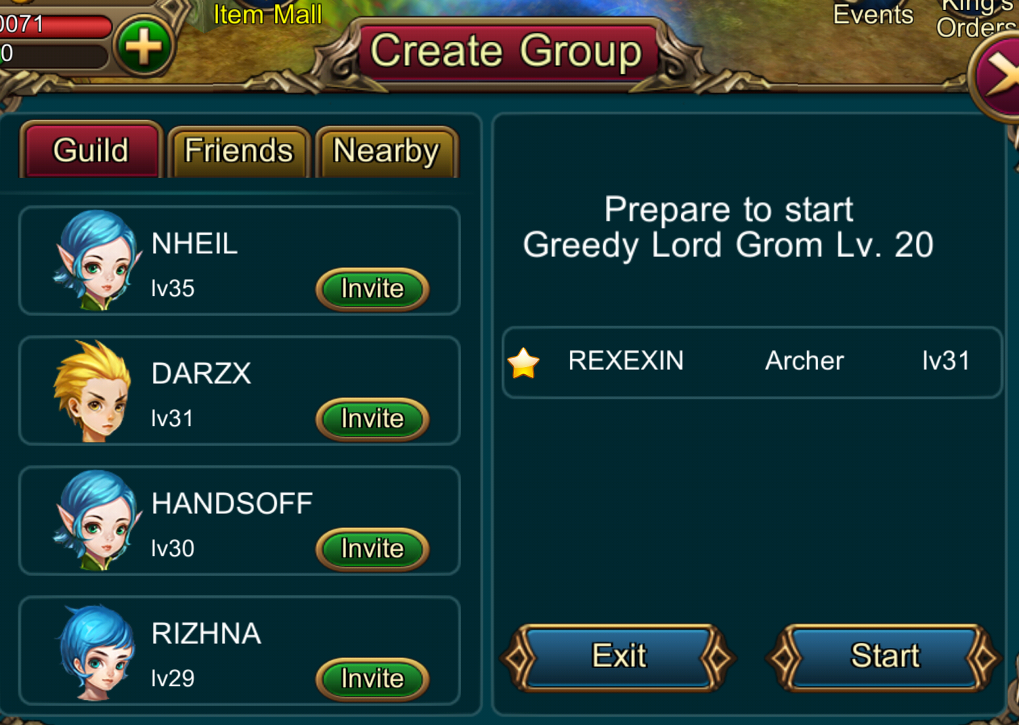 เมื่อเราเข้ามายังหน้า Create เกมจะให้เราเลือกชวนคนในกิลด์,เพื่อน หรือคนที่อยู่ใกล้ๆ