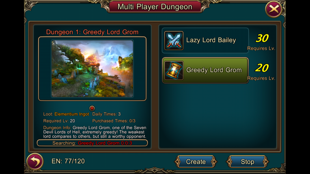 3.Create สร้างห้องปาร์ตี้เพื่อเตรียมลุยดันเจี้ยน