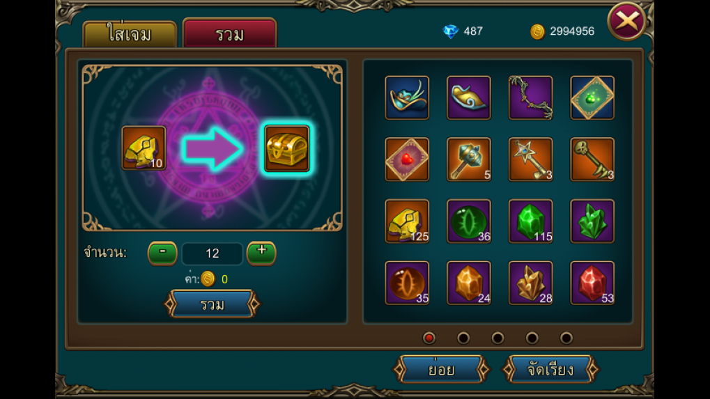 ในส่วนนี้จะเป็นหน้าจอในการอัพเกรดสกิลและเลือกสกิลที่จะนำมาใช้ในดันเจี้ยน
