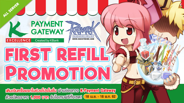 เพียงเติมเงินเกม Ragnarok Extreme 1,000 บาท ครั้งแรก ผ่าน K-Payment รับไอเทมภายในเกมฟรี!