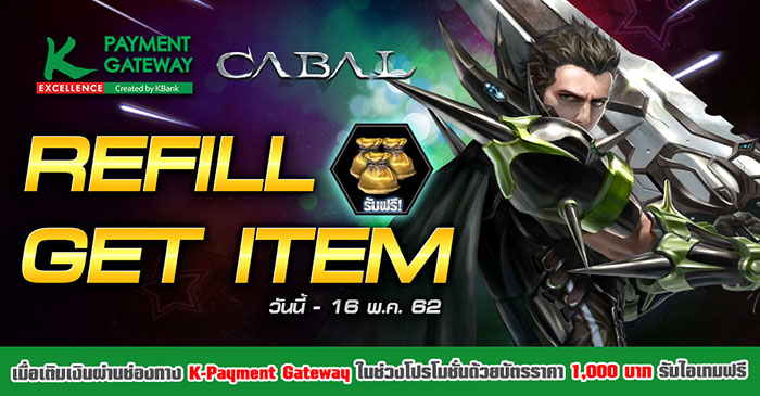 เพียงเติมเงินเกม Cabal Extreme 1,000 บาท ครั้งแรก ผ่าน K-Payment รับไอเทมภายในเกมฟรี!