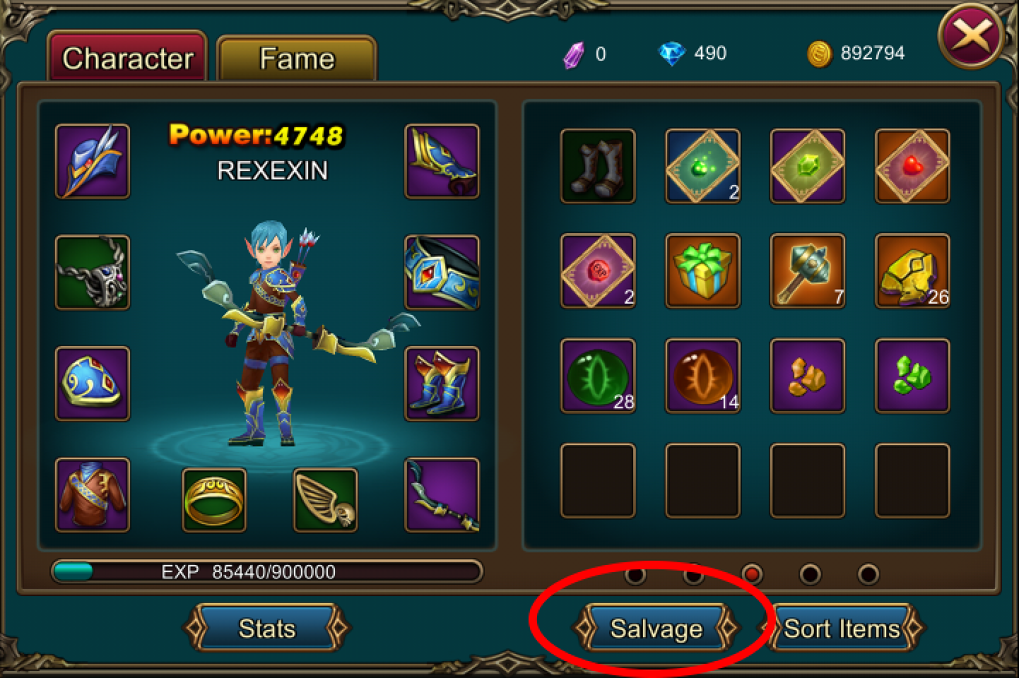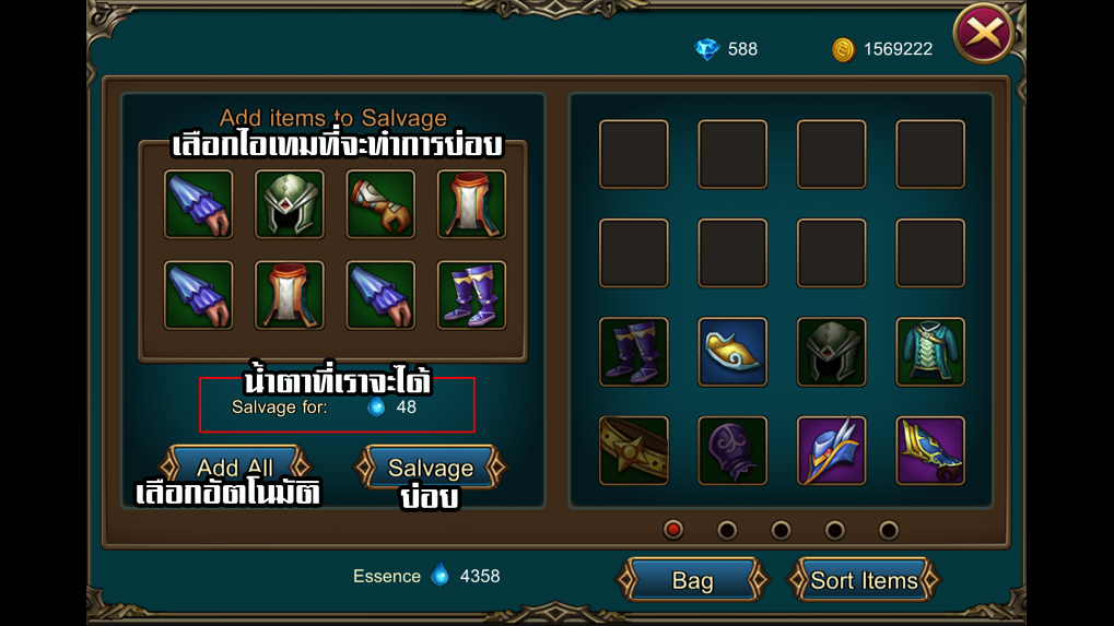 ขยายความจากหัวข้อข้างบนเราสามารถที่จะย่อยอาวุธทำน้ำตาได้จากเมนู Character จากนั้นกดไปที่ Salvage  จากนั้นเลือกไอเทมที่จะย่อย