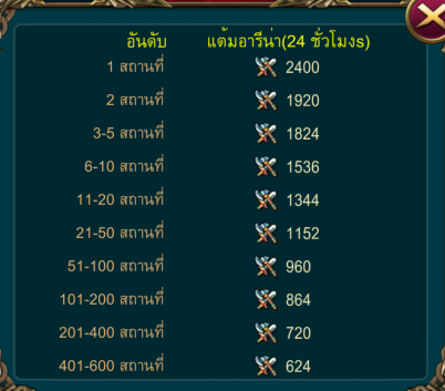 3.อันดับปัจจุบันของเรา (หากกดจะดูรางวัลที่ได้ในแต่ละระดับได้) โดยรางวัลเราจะได้ทุกวัน