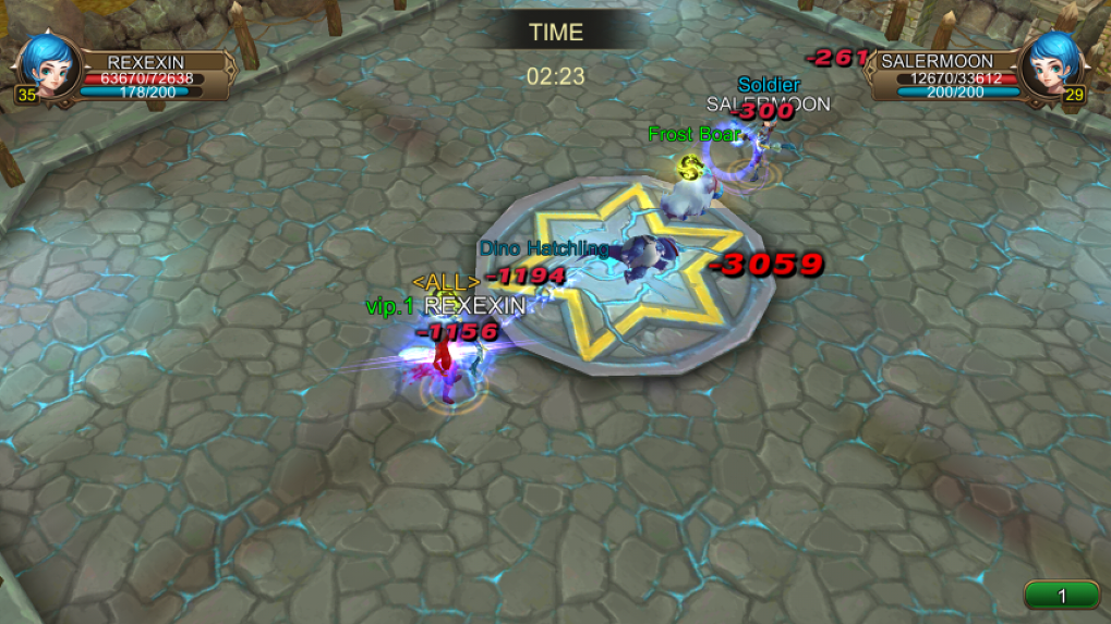 เมื่อเราเลือกเป้าหมายในการท้าประลองแล้วเราจะเข้ามาอยู่ในหน้านี้และการต่อสู้จะดำเนินไปแบบอัตโนมัติ(ควบคุมเองไม่ได้) โดยสิ่งที่เราทำได้อย่างเดียวคือเร่งสปีดในการต่อสู้ (ที่ขวาล่างสีเขียว)