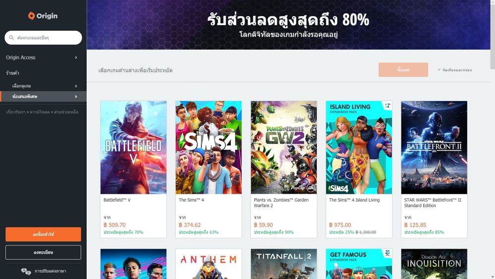 อีเว้นท์ลดราคาเกมต่างๆ ในเครือ ผ่านช่องทางการให้บริการ Origin ลดสูงสุดถึง 80% เลยทีเดียว ความน่าสนใจก็คือลดราคาเกมในครั้งนี้มีเกมน่าซื้อเพียบเลยแหะ ไม่ว่าจะเป็น