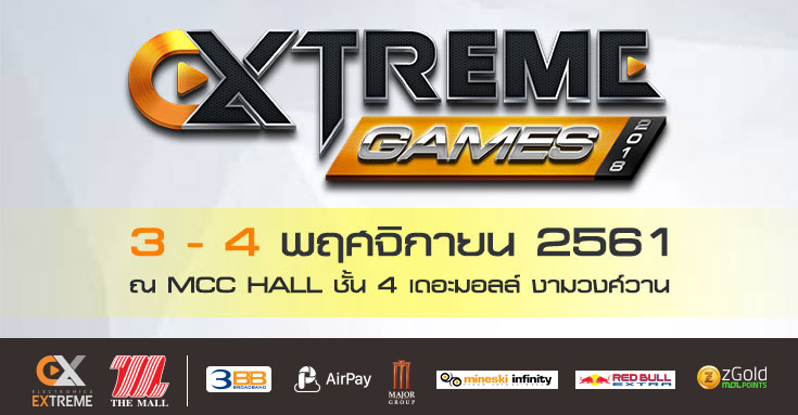 แล้วพบกันที่งาน Extreme Games 2018 : Games On 3 - 4 พฤศจิกายนนี้ ณ MCC Hall ชั้น 4 เดอะมอลล์ งามวงศ์วาน เกมเมอร์ตัวจริงห้ามพลาดเด็ดขาด!