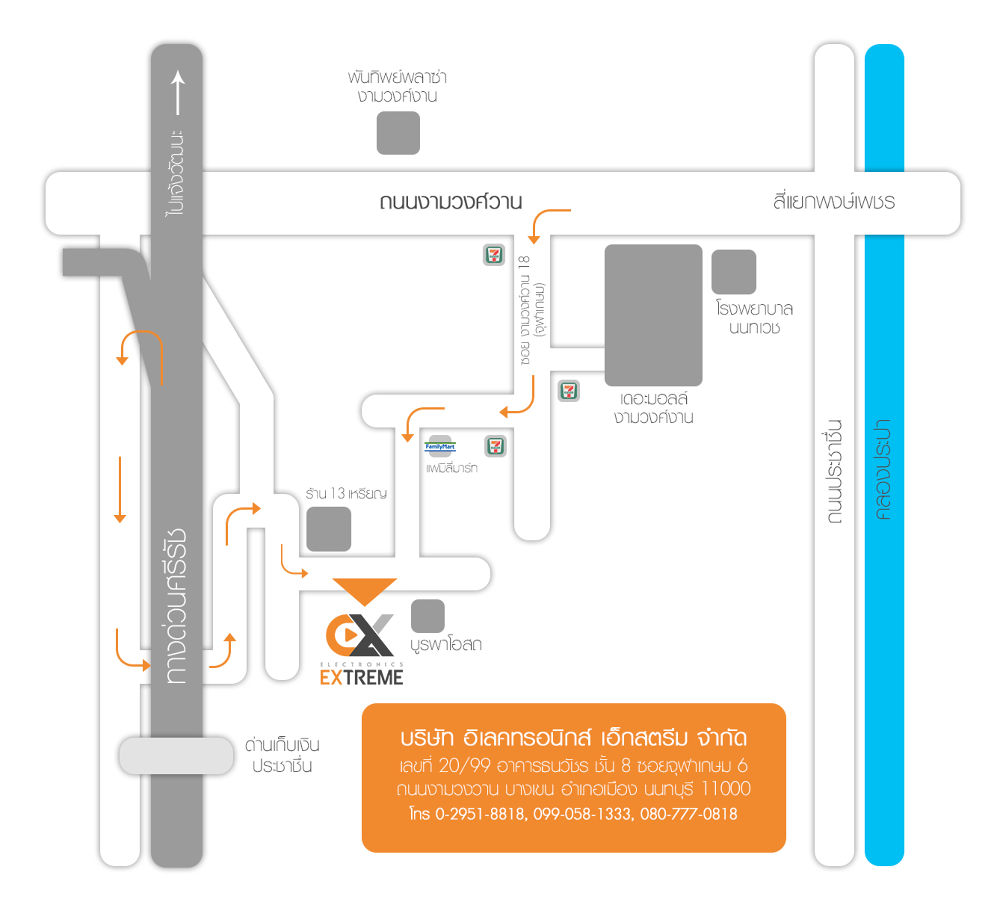 บริษัท Electronics Extreme ตั้งอยู่ในอาคารธนวัชร ชั้น 8 เลขที่ 20/99 อาคารธนวัชร ถ.งามวงศ์วาน ต.บางเขน อ.เมือง จ.นนทบุรี 11000