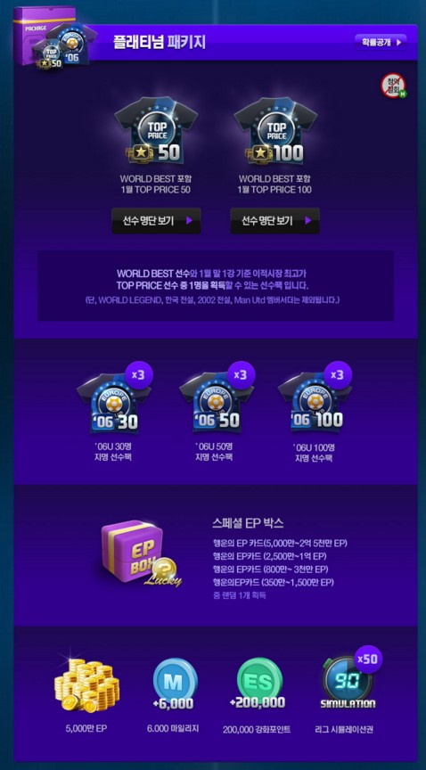 • ’06 EUROPE CLUB 100 package โดยคัดเลือกนักเตะจาก 100 คน x2