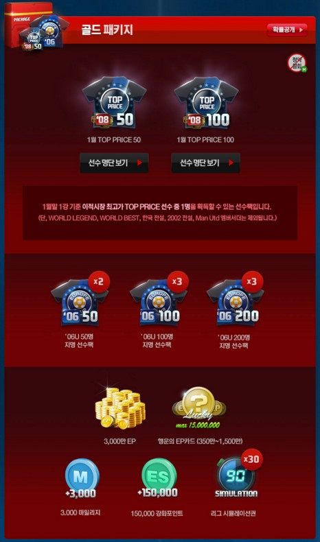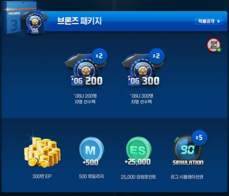 • ’06 EUROPE CLUB 300 package โดยคัดเลือกนักเตะจาก 300 คน