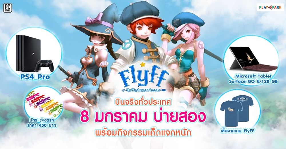 (ระยะเวลากิจกรรม : 8 มกราคม 2562 – 8 กุมภาพันธ์ 2562) ฉลองเปิดเกมเตรียมต้อนรับเหล่านักบินกับกติกาง่ายๆ เพียงแค่สะสมชั่วโมงการเล่น ทุกๆ 1 ชั่วโมง เพื่อนๆ ก็มีสิทธิ์ลุ้นรับ Microsoft Tablet Surface GO และ Flyff Premium item มูลค่ารวมมากกว่า 50,000 บาท!! ประกาศรายชื่อผู้โชคดีวันที่ 15 กุมภาพันธ์ 2562