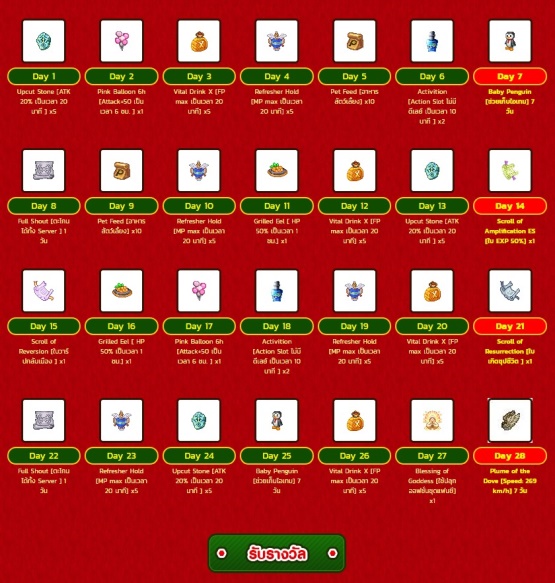 กิจกรรม “DAILY LOGIN ล๊อคอินทุกวัน รับไอเทมฟรีทุกวัน”