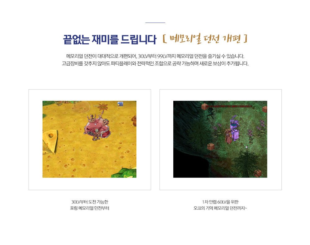 ● เพิ่มอีเว้นท์พิเศษที่ผู้เล่นจะต้องลงดันเจี๊ยน ภายในนั้นจะมีบอสให้เราได้ทราบ โดยจะสามารถลงไปได้ต่อเมื่อตัวละครมีเลเวล 30 ขึ้นไป แน่นอนว่าจะมีไอเท็มพิเศษๆ รอเราอยู่