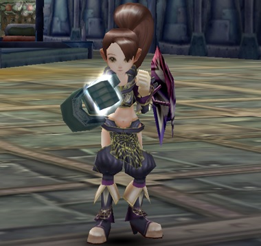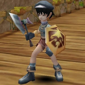 ถ้าเราเลือกใช้อาวุธหมัด จะทำให้สามารถสวมใส่โล่เพื่อเพิ่มพลังป้องกันหรือเจาะโล่แล้วติดตั้งการ์ดเพิ่มสเตตัสลงไปเพิ่มความแข็งแกร่งได้ด้วย ( แต่ส่วนใหญ่ใส่เท่ๆ มากกว่า เพราะใช้แต่ไม้เท้าเวทมนตร์เป็นอาวุธหลักอยู่ดี )