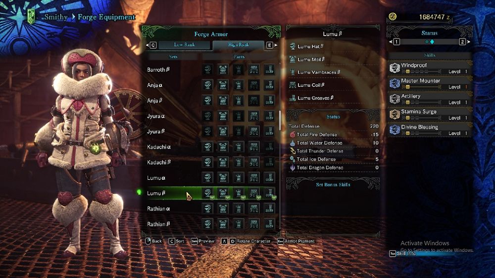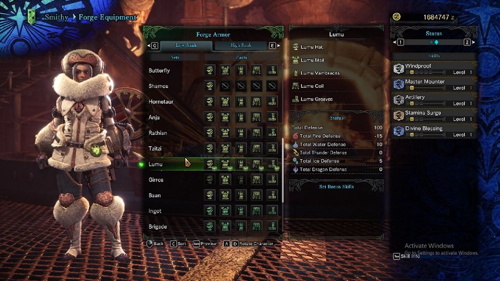 ชุดเกราะของ Paolumu จะมีทั้งหมด 3 Set ด้วยกันคือ Lumu Armor Set, Lumu Alpha Armor Set (α) และ Lumu Beta Armor Set (β) จากสเตตัสและทักษะของชุดแล้วถ้าถามอาเจ๊นัทว่าควรทำดีรึเปล่า...อันนี้ตอบยากแหะ เพราะมันเป็นชุดที่ป้องกันธาตุลมเป็นหลัก เอาเป็นว่าก็ขึ้นอยู่กับเพื่อนๆ ก็แล้วกันค่ะ แต่ถ้าใครที่ซื้อตัวเกมล่วงหน้าจะได้รับชุดเกราะ Origin Armor Set แนะนำว่าใช้ Set นี้ไปยาวๆ ก่อนจะดีกว่า หรือถ้าผู้เล่นใหม่แนะนำให้สร้างชุดเกราะ Bone Armor จะดีกว่าเพราะไอเท็มที่มันต้องการหาได้ไม่ยากนัก แถมสามารถใช้ได้ยาวจนถึงจบเนื้อเรื่องก็ได้ แต่ทั้งนี้ก็ขึ้นอยู่ที่ผู้เล่นแล้วค่ะ ว่าจะเลือกชุดเกราะ หรือ เปลี่ยนตอนไหน