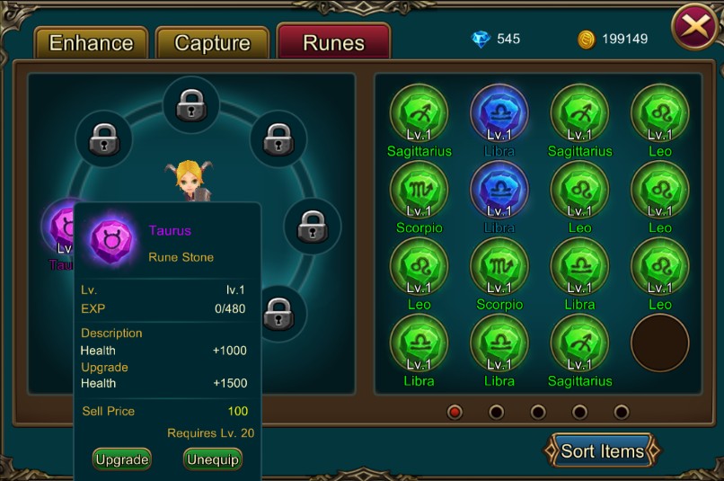 เมื่อเราได้หินจากการ Captures แล้วก็มาถึงคราวนำมาใช้งานกัน โดยการใช้งานก็ง่ายๆเพียงแค่เลือกหินที่ดีที่สุสำหรับเราแล้วสวมใส่เลย แล้วอย่าลืมอัพเกรดเพิ่มเลเวลมันด้วยล่ะ!! ในตัวละครของเราสามารถใส่ Rune ได้ทั้งหมด 8 เม็ด โดยการจะสวมใส่อันต่อๆไปได้นั้นก็จำเป็นต้องเก็บเลเวลตัวละครของเราให้ถึงตามที่แต่ละช่องกำหนดซะก่อน!