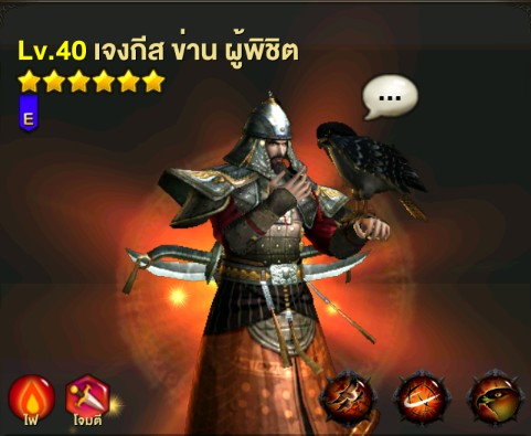 เจงกีส ข่าน หนึ่งในฮีโร่ที่มีคนพูดถึงกันว่าเด็ด!! แล้วมันเด็ดยังไงน่ะหรอ อย่างแรกเจงกีส ข่าน มีสเตตัสที่ค่อนข้างสูงไม่ว่าจะเป็น HP, พลังโจมตี, พลังป้องกัน, พลังป้องกันเวทย์ สามารถนำมาใช้เป็นตัวชนได้พอสมควรเลย และยังมีสกิลล้างบัพที่แสบเอามากๆ เพราะระยะของสกิลนี้มีวงกว้างมาก คือถ้าใช้ยังไงมันก็ต้องโดน หากเจอศัตรูที่มีฮีโร่เน้นบัพมา เตรียมยิ้มอย่างผู้ชนะได้เลย ลองคิดดูว่าสกิลบัพอย่างบัพเพิ่มพลังโจมตีทั้งหลายแหล่มันมีประโยชน์มากแค่ไหน หากตัวที่มีดาเมจหนักๆได้รับบัพนี้เข้าไป เมื่อโจมตีฮีโร่ฝ่ายเราหรือสกิลมา ฮีโร่เราอาจมีดับแน่นอน แต่เมื่อเรามีสกิลนี้เราจะสามารถล้างบัพเหล่านั้นออกไปได้ หากทีมเรามีตัวบัพดาเมจแจ่มๆล่ะก็ โฮ่ะๆ คุณคิดว่าใครจะได้เปรียบกว่ากันครับ โดยเจ้าสกิลตัวปัญหาที่ว่านี้ก็คือสกิล พรของเหยี่ยว ซึ่งจะสร้างความเสียหาย 85% ของพลังโจมตีและที่เด็ดคือยกเลิกบัพของศัตรูด้วยนั่นเอง ยังไม่หมดแค่นี้นะเจงกีสข่านยังมีสกิลสุดป่วนอีก 1 สกิลแถมมาให้ใช้งานกันอีกด้วย นั่นก็คือสกิลค้นหาเหยื่อ ความสามารถของสกิลนี้จะสร้างตวามเสียหาย 120% ของพลังโจมตี และเมื่อศัตรูที่โดนสกิลนี้จะไม่สามารถใช้สกิลใดๆได้เป็นเวลา 2 วินาที! เป็นอีกความสามารถที่ใช้สำหรับสกัดดาวรุ่งจริงๆ นอกจากนั้นอีกก็มีสกิลอัญเชิญที่ไม่ธรรมดา ซึ่งจะสร้างความเสียหายคริติคอล +30% เป็นเวลา 10 วินาทีอีกด้วย แค่คิติคอลปกติก็แรงอยู่แล้วนี่ยัง บวกเพิ่มไปอีก 30% แรงมากครับขุ่นพระ! จากโดยรวมผมมองเลยนะว่าลุงเจงกีสข่าน เป็นฮีโร่ที่ครบเครื่องเอามากๆและสกิลก็มีประโยชน์มากพอสมควรเลย ก็แนะนำว่านี่เป็นอีกหนึ่งฮีโร่ที่น่าปั้นมากๆอีกตัวนึงเลยครับ!!....