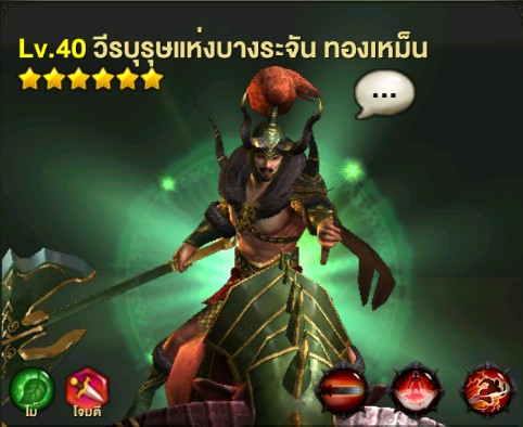 วีรบุรุษแห่งหมู่บ้านบางระจัน นายทองเหม็น อีกหนึ่งฮีโร่พิเศษสำหรับผู้เล่น Hero นักสู้กู้พิภพ ชาวไทยเท่านั้น! สำหรับทองเหม็นเป็นฮีโร่สายโจมตีธาตุไม้ ที่ความโหดนี่บอกเลยว่าไม่เป็นสองรองใคร ด้วยพลังป้องกันถึง 7938 มีมากกว่าคิงอาร์เธอร์เสียอีก ในขณะที่คิงอาร์เธอร์มีพลังป้องกันเพียง 5685 เท่านั้น แต่มีจุดเด่นก็ต้องมีจุดด้อยบ้าง ซึ่งทองเหม็นแม้ว่าจะมีพลังป้องกันที่สูงแต่ พลังป้องกันเวทย์ของเค้านั้นมีเพียงแค่ 2646 น้อยกว่าคิงอาร์เธอร์ที่มี 5211 ทำให้ทองเหม็นอาจจะทนการโจมตีทางเวทย์ได้ไม่ดีมากนัก แต่ถ้าเจอกับสายโจมตีล่ะก็ หึหึ..เข้ามาเถอะ ในเรื่องการใช้งานทองเหม็นก็ต้องระวังเอาไว้ซักนิดนึงเรื่องเจอกับธาตุที่แพ้ทางอย่างธาตุไฟ ถ้าหากทองเหม็นที่เป็นธาตุไม้ที่แพ้ทางกับธาตุไฟล่ะก็ ดันไปเจอกับเวลกานอสที่เป็นสายโจมตีเวทย์ธาตุไฟอีก ทองเหม็นอาจได้มีกลับบ้านเก่าได้ง่ายๆอย่างแน่นอน มาดูในส่วนสกิลของทองเหม็นกันบ้างดีกว่า ทองเหม็นมีสกิล STAMPEDE ที่จะพุ่งเข้าหาศัตรูด้านหน้าสร้างความเสียหาย 170% ของพลังโจมตี พร้อมกับทำให้ศัตรูติดสถานะสตั้นทุกตัวเป็นเวลา 1 วินาที ถือว่าเป็นสกิลทีเด็ดมากเลยทีเดียว เหมาะมากกับการใช้สกิลนี้เปิดก่อนเพื่อพุ่งเข้าหาศัตรูก่อนแล้วตามด้วย สกิลHORNED STRIKE ที่จะสร้างความเสียหาย 75% แก่ศัตรูรอบๆและเพิ่มพลังโจมตีให้อีก 70% ด้วย ทำให้ศัตรูโดนสกิลนี้ของเราไปด้วยซึ่งสามารถหวังผลได้มากเลยทีเดียว พร้อมจบด้วยสกิล TORNADO AXE ที่จะปาขวานออกไปอย่างรุนแรงด้านหน้า สร้างความเสียหาย 170% ของพลังโจมตี สกิลนี้ควรใช้หลังเปิดใช้งานสกิล HORNED STRIKE และผลของบัพเพิ่มพลังโจมตี 70% ยังอยู่จะช่วยให้ทำดาเมจได้อย่างมหาศาลเลยล่ะ