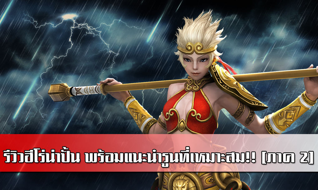 ซุนหงอคงมาในเกมนี้หลังจากได้ออกเดินทางไปยังชมพูทวีปกับพระถังซัมจั๋ง จึงทำให้หงอคงได้ค้นพบเพศที่แท้จริงของตนเอง จึงได้ไปขอพรต่อพระพุทธเจ้า ขอให้ข้ากลายเป็นสาวด้วยเถิด หลังจากนั้นพระพุทธเจ้าได้ตอบกลับมาหาหงอคงหนุ่มว่า เจ้าได้สิทธินั้นเดี๋ยวนี้! และนี่คือเรื่องราวความเป็นมาของซุนหงอคงก่อนที่จะมาเป็น หงอคงสาวนั่นเองง -*- ขอเข้าเรื่องเลยแล้วกันครับ เห้งเจีย ซุนหงอคง ณ ตอนนี้เป็นตัวที่เหล่าสายเวทย์ต้องหยีปากกันเลยทีเดียว กับความสามารถในการเข้าไปล้วงเหล่าสายเวทย์ของเธอ อย่างสกิลทีเด็ด คือวานรศิลา ที่จะมอบการต้านทานพลังโจมตีเวทย์เป็นเวลา 3 วินาทีและเพิ่มพลังป้องกัน +50% เป็นเวลา 10 วินาที ต้องอธิบายเพิ่มซักนิดว่า ความสามารถต้านทานเวทย์ 3 วินาทีนี้มันคือความสามารถที่ฮีโร่ตัวนี้จะไม่โดนดาเมจเวทย์ใดๆเลยทั้งสิ้นๆจนกว่าจะหมดเวลา ทำให้เธอสามารถเข้าปะทะกับพวกสายเวทย์ได้แบบชิลๆ เลยทีเดียว และยังมีความถึกจากการพลังป้องกันให้อีกด้วย เป็นสกิลที่ครบเครื่องเอาเรื่องจริงๆ ส่วนสกิลอื่นๆอย่างเมฆาคะนอง ก็จะเป็นสกิลที่จะพุ่งเข้าไปหาศัตรูเลยพร้อมสร้างความเสียหาย 135% ของพลังโจมตีอีกด้วย การลำดับใช้งานสกิลอาจจะเปิดด้วยสกิลเมฆาคะนองก่อนเพื่อพุ่งเข้าหาศัตรูแล้วจากนั้นค่อยเปิดใช้ วานรศิลาตามก็ได้ หรือ 2 สกิลนี้อาจจะสลับใช้อันไหนก่อนหลังก็ได้ตามความเหมาะสมของศัตรูด้วย เมื่อเข้าประชิดศัตรูด้วย 2 สกิลนี้ไปแล้วก็จบด้วยการใช้สกิล มายา 8 ทิศ ซึ่งจะสร้างความเสียหาย 125% ของพลังโจมตี ในส่วนของสกิลผู้นำหลายๆคนน่าจะชอบพอสมควร ซึ่งสกิลนี้จะเพิ่มป้องกันเวทย์ +10% ให้กับปาร์ตี้ทั้งหมด สามารถเสริมจุดด้อยของฮีโร่บางตัวได้พอสมควรเลย!...