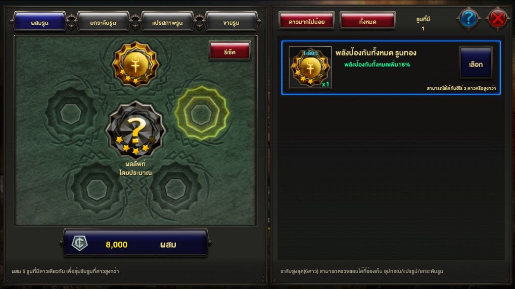 - ผสมรูนทอง 4 ดาว ใช้ 8,000 แต้มเกียรติยศ