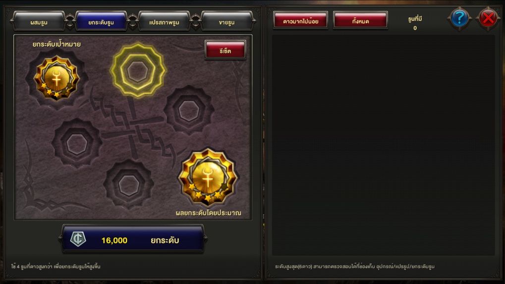 - ยกระดับรูนทองเป็น 4 ดาว ใช้ 16,000 แต้มเกียรติยศ