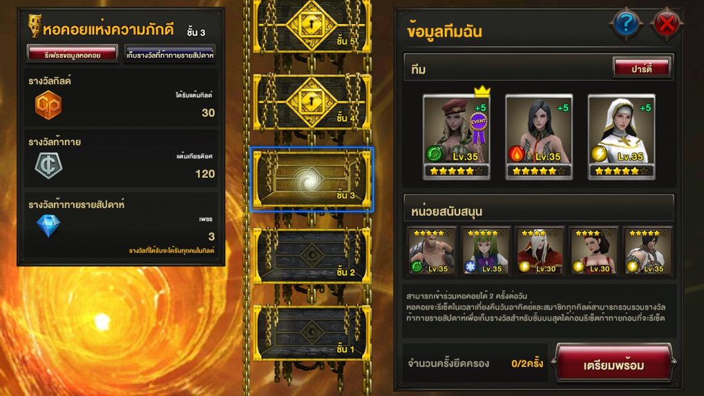 • ชั้น 35 = รางวัลสำเร็จ(ผ่านครั้งแรก) แต้มเกียรติยศ 2,000 แต้ม หากลงซ้ำครั้งต่อไปจะได้ครั้งละ 145 แต้ม