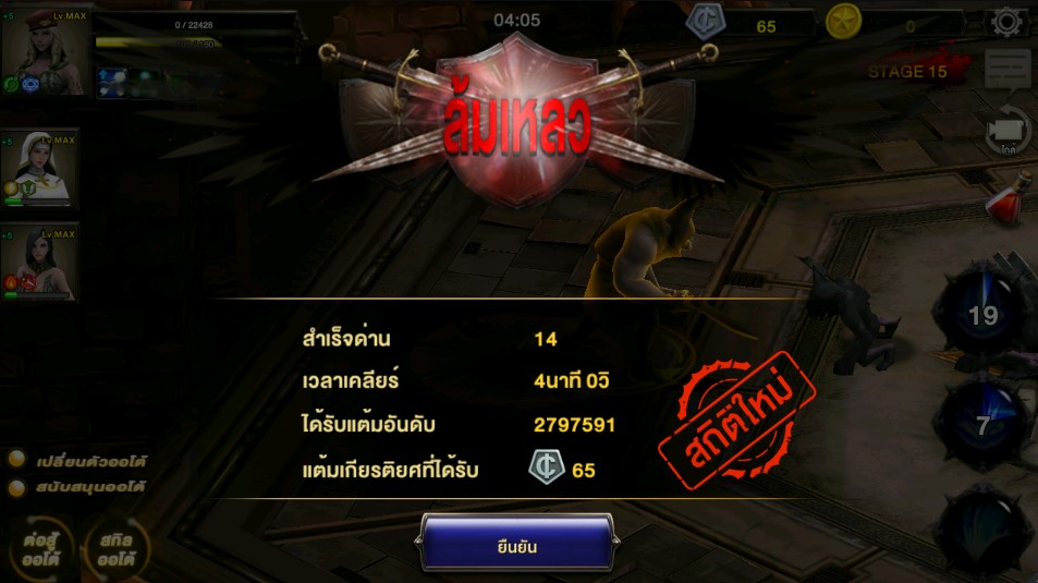 • ชั้น 15 = รางวัลสำเร็จ(ผ่านครั้งแรก) แต้มเกียรติยศ 500 แต้ม หากลงซ้ำครั้งต่อไปจะได้ครั้งละ 64 แต้ม