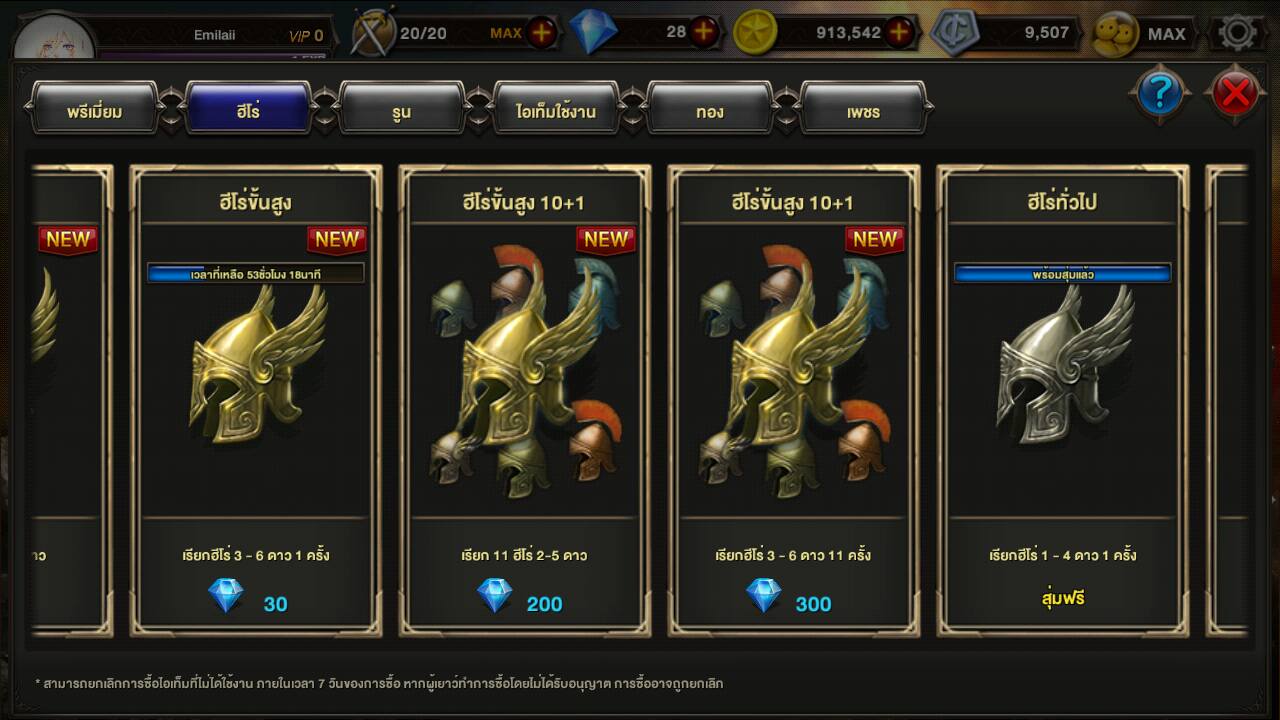 โปรดอย่าลืมว่าในร้านค้า เราสามารถมากดสุ่ม "ฮีโร่ทั่วไป" ได้ฟรี! วันละ 1 ครั้งด้วยนะ แถมมีแบบ 3 วันได้สุ่ม ฮีโร่ขั้นสูงอีกด้วย เผลอๆดวงดีๆวันนึงเข้ายังไงก็ต้องมีได้ 5-6 ดาวบ้างแน่นอน เพราะหลายๆคนเค้าก็ได้มาแล้วทั้งนั้น ผู้เขียนเองยังเคยได้ 5 ดาวเลยนะขอบอก ^^
