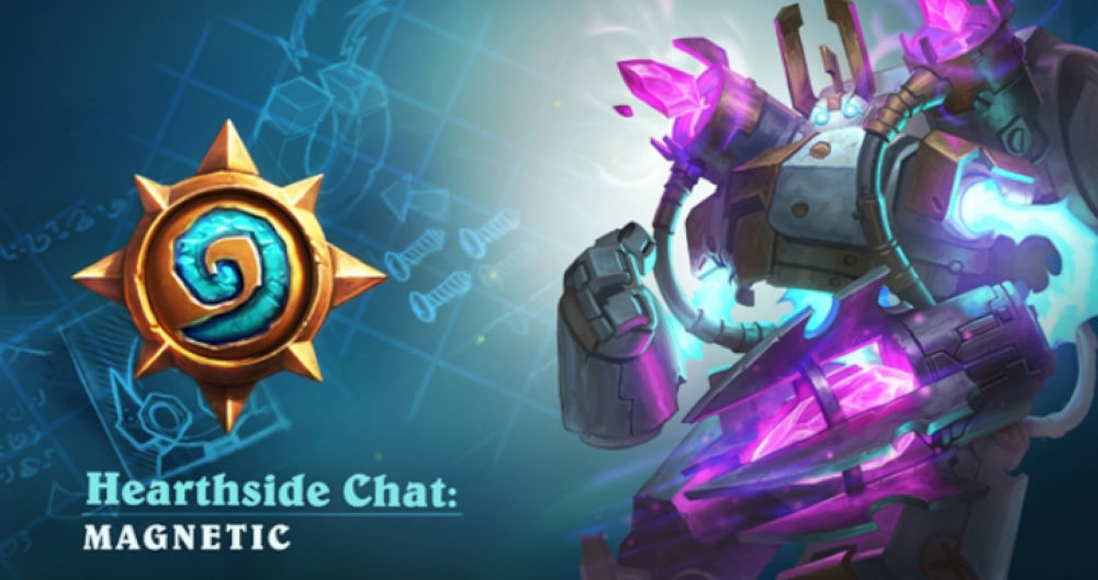 วันนี้ สตีเฟน ชาง นักออกแบบเกมในทีมพัฒนา Hearthstone จะมาพูดถึง แม่เหล็ก คีย์เวิร์ดใหม่ที่กำลังจะมาสู่ Hearthstone ในส่วนเสริมล่าสุด The Boomsday Project ผู้เล่นจะสามารถพบคีย์เวิร์ด แม่เหล็ก ได้บนการ์ดเครื่องจักรบางใบในชุดการ์ดนี้ โดยแม่เหล็ก จะทำให้ผู้เล่นสามารถเลือกที่จะรวมร่างเครื่องจักรสองตัวให้กลายเป็นมหันตภัยจักรกลขนาดยักษ์ หรือเล่นเป็นมินเนี่ยนธรรมดาแยกจากกันก็ได้