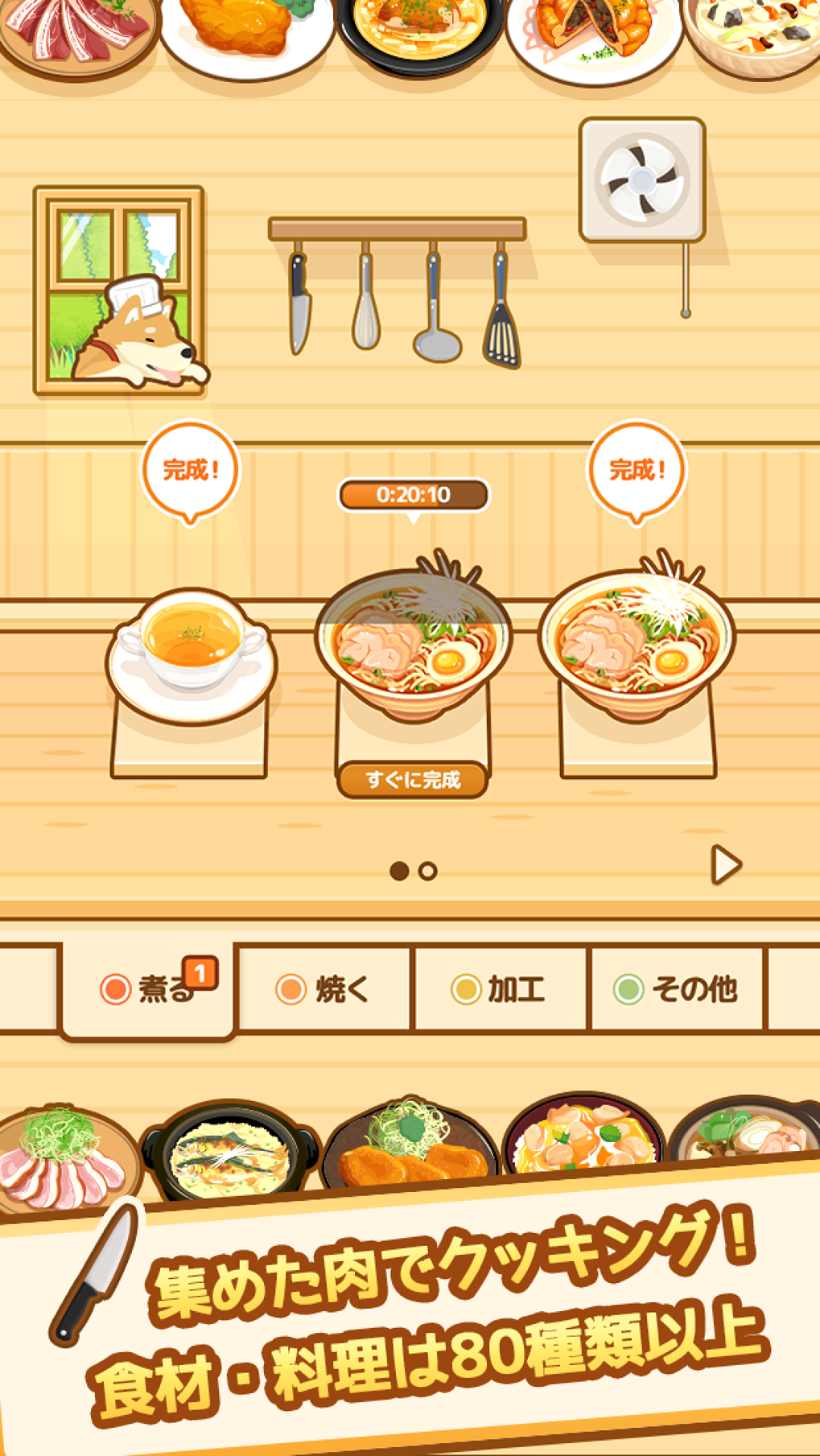 Hunt Cook คือเกมที่เรา และสุนัขที่ชื่อ " Tencho " จะไล่เก็บวัตถุดิบเพื่อทำอาหารชนิดต่าง ๆ ขึ้นมา โดยในเกมจะให้เราได้ล่าวัตถุดิบแปลก เช่น อีกา หรือตัวแบดเจอร์เพื่อค้นหาความอร่อยรูปแบบใหม่ในตัวอาหาร สิ่งที่ดึงดูดที่สุดในเกมนี้เลยก็คือระบบล่าสัตว์ที่สัตว์แต่ละประเภทจะมีมินิเกมที่แตกต่างกันออกไปให้เราได้เล่น และต้องชนะเพื่อที่จะนำเนื้อสัตว์เหล่านั้นมาทำอาหารต่อไป ทั้งนี้ในเกมยังมีการสอดแทรกเนื้อหาดี ๆ เกี่ยวกับสัตว์ประเภทนั้น รวมไปถึงวิธีกินอีกด้วย
