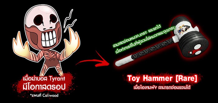 เมื่อฆ่าบอส Tyrant แผนที่ Caliwood มีโอกาสได้รับไอเทม Toy Hammer [Rare]