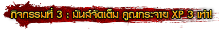 ผู้เล่นจะได้รับค่าประสบการณ์ (XP) จากการฆ่าซอมบี้ทั่วไปเพิ่มเป็น 3 เท่า ภายในช่วงระยะเวลากิจกรรม