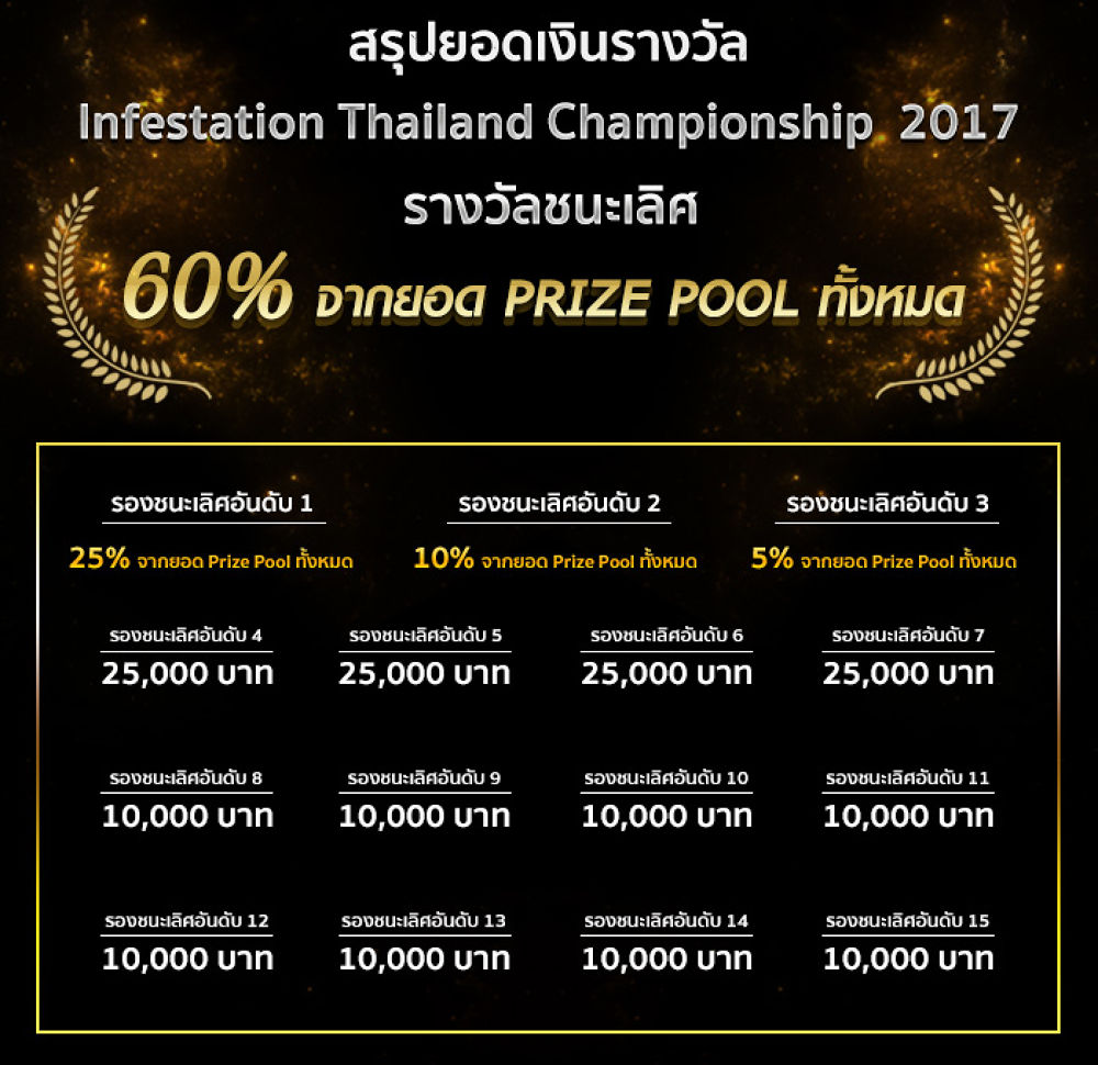 โดยการแข่งขัน Infestation Thailand Championship 2017 ในปีนี้จะจัดขึ้นที่งาน Thailand Game Show Big Festival 2017 ในวันที่ 3 ถึง 5 พฤศจิกายน 2560 โดยจะแบ่งคัดเลือกจากรายการ Extreme Road Show Qualified จำนวน 10 ทีม และ 6 ทีมจากรายการ Pro League 2017