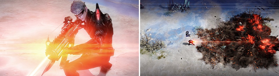- Escape - ผู้เล่นจะลอยอยู่บนกลางอากาศด้วยความช่วยเหลือจากหุ่นโดรน แล้วยิงปืนรัวๆ ใส่ศัตรู + บินหลบหนีชั่วขณะ