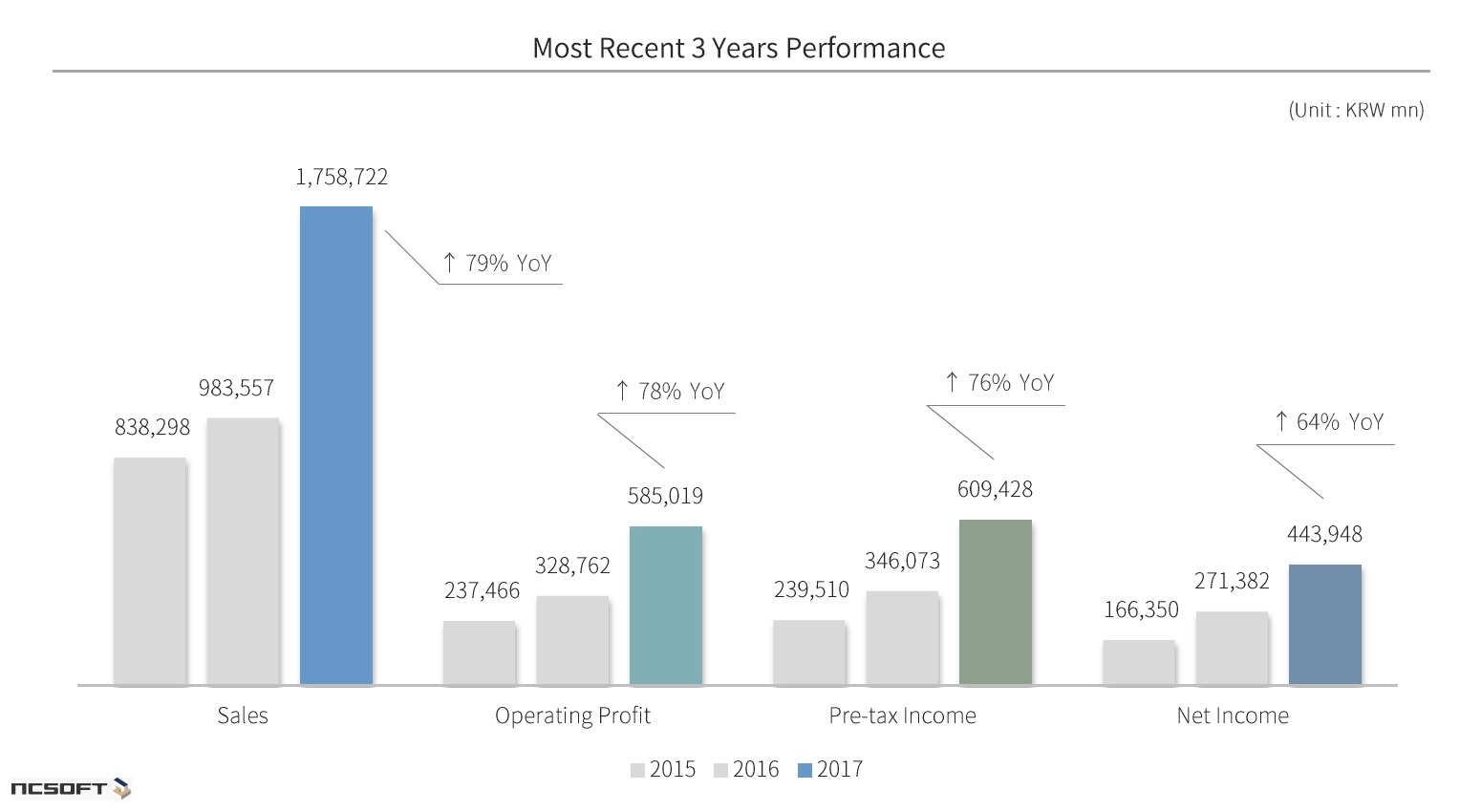 แต่ก็ใช่ว่าจะไม่มีเกมที่ประสบความสำเร็จนะคะ อย่างเกม Lineage M จักรวาลใหม่ของซีรี่ย์ Lineage ที่ตอนแรกกระแสต้อนรับดีมาก แต่ความนิยมของเกมนี้ก็ตกลงมากเช่นเดียวกัน ถ้าให้นับรวมๆ แล้วเฉพาะเกมมือถือคิดเป็นรายได้ 57% จากทั้งหมดของในช่วงปี 2017 ซึ่งถือว่ามันเป็นจำนวนเงินที่มากเลยค่ะ ปัจจุบัน NCSoft มีเกมอยู่ในมือมากมายทั้งเกมบนมือถือเอง อาทิเช่น Blade & Soul 2 ที่พึ่งเปิดตัวใหม่, AION Tempest, Lineage M หรือ Project TL เกมออนไลน์ตัวใหม่ที่จะเปิดให้บริการในเวอร์ชั่น PC ซึ่งกระแสของเกมนี้คนให้ความสนใจอย่างมากแถมปลายปีนี้จะเปิดทดสอบอีกด้วย ส่วนเกมใหม่ที่ยังไม่เปิดเผยในตอนนี้ก็มีเช่นเดียวกัน รอการประกาศอย่างเป็นทางการอีกที คาดว่าก็นู่นค่ะ ใกล้ๆ งาน G-Star 2018 เราคงได้ยินข้อมูลใหม่ๆ เพิ่มเติมกันบ้าง