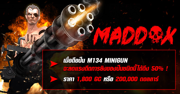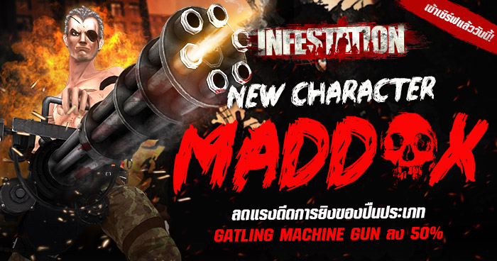 ข่าวดีสำหรับสาวกเกม Infestation จากค่ายน้องใหม่มาแรง Electronics Extreme ซึ่งมีการอัพเดทตัวละครใหม่ล่าสุดคือพี่ล่ำวายร้ายนามว่า " MADDOX " ที่พร้อมมากระหน่ำยิงกันให้เละเป็นจุลแล้ววันนี้!!!! โดยความเก๋าของพี่ล่ำเค้า คือสกิลเฉพาะตัวสุดโหด คือ " เมื่อไหร่ก็ตามที่พี่แกถือปืน Gatling Machine Gun " M134 MINIGUN " จะลดแรงดีดการยิงของปืนชนิดนี้ได้ถึง 50% ! " โดยเหล่าเกมเมอร์สามารถจับจองเป็นเจ้าของพี่ล่ำได้แล้วในราคาเพียง 1,800 GC หรือค 200,000 ดอลลาร์ เท่านั้น!