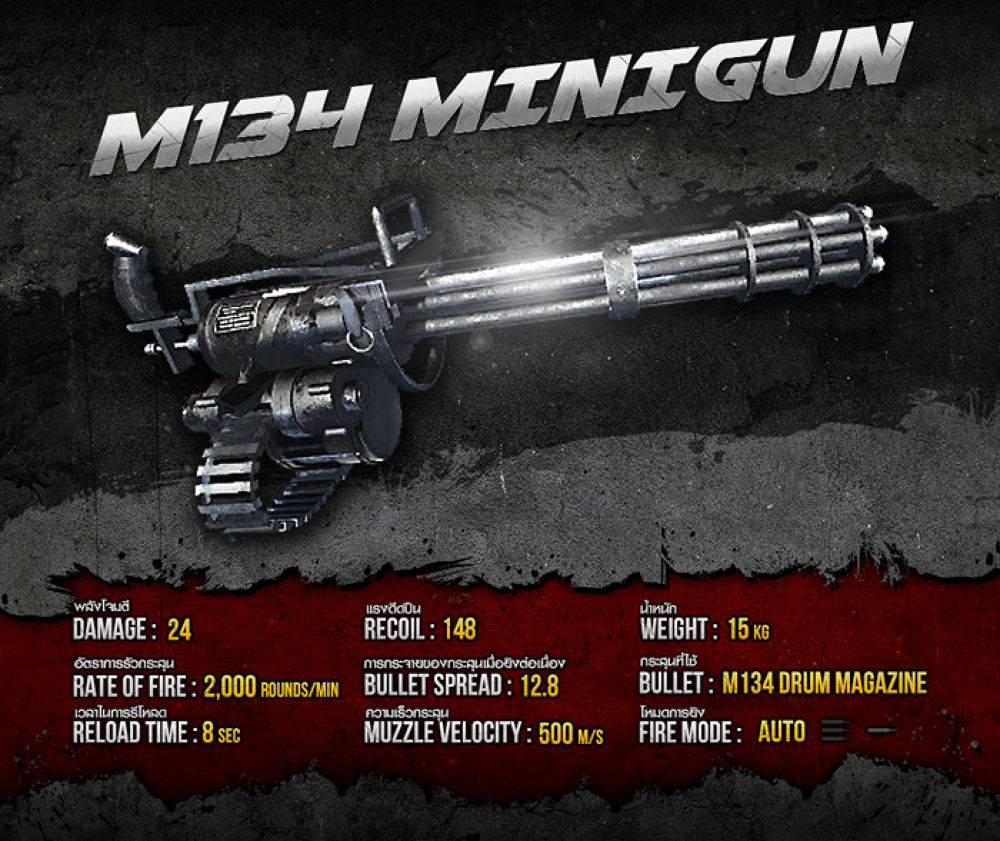 2. เมื่อตัวละครนี้ถือปืนกลหนัก Gatling Machine Gun " M134 MINIGUN " จะเพิ่มความสามารถพิเศษ ลดแรงดีดการยิงของปืนชนิดนี้ 50%