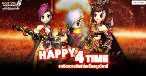 Yulgang ยุทธภพครบสลึง สุดยอดเกม MMO แนวจีนอันดับ 1 ในประเทศไทย กิจกรรม “Happy 4 Time” เอาใจชาวโยวกัง เพียงอยู่ในยุทธภพครบตามเวลาที่กำหนด จะได้รับบัพค่าประสบการณ์ที่เพิ่มขึ้น ยิ่งออนไลน์นานมากเท่าไร ค่าประสบการณ์ก็ยิ่งเพิ่มขึ้นเท่านั้น กิจกรรมเริ่มตั้งแต่วันนี้ - 30 มีนาคม 2560 และตอนนี้เพื่อนๆสามารถเล่น Yulgang ด้วย Facebook ID ได้แล้วนะ รายละเอียดกิจกรรมเพิ่มเติม (อ่านที่นี่)