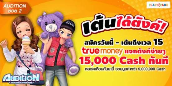 แค่สมัครสมัครในเซิร์ฟเวอร์ Audition ซอย 2 และเล่นถึงเลเวล 15 ก็ลุ้นรับเงินไปช๊อปปิ้งในเกมแบบฟรีๆ รวมมูลค่ารางวัลกว่า 5,000,000 cash กันเลยทีเดียว! ตั้งแต่วันนี้ – 30 กันยายนนี้จ้า รายละเอียดเพิ่มเติม