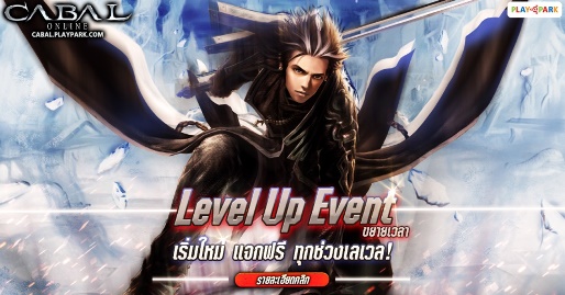 CABAL Online สุดยอดเกม Action MMORPG ระดับตำนาน การันตีสถิติ 10 ล้าน ID ทั่วไทย! พบกับกิจกรรม Level Up ถึงปั้บบ รับทันที!! เมื่อผู้เล่นเลเวลอัพในช่วงระยะเวลากิจกรรม ก็จะได้รับของรางวัลตาม LEVELของตัวเอง โดยกิจกรรมมีตั้งแต่วันนี้ - 31 มีนาคม 2560 รายละเอียดเพิ่มเติม (อ่านที่นี่)