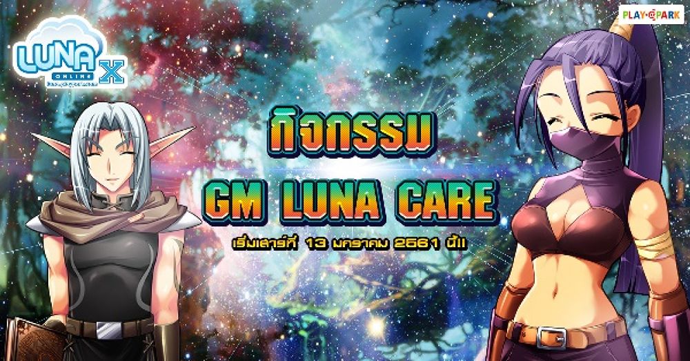 ตำนานเกมสุดแบ๊ว กับกิจกรรม GM Luna Care เล่นจะได้พบกับ GM ทั้ง 3 คนได้แก่ GM พี่จ๊อบ , GM น้องแฮม และ GM เสี่ย V ที่เมื่อง อัลเคอร์ฮาเบอร์ที่จะเข้ามาให้ความช่วยเหลือผู้เล่นระดับเลเวล 1 – 40 ในการตั้งปาร์ตี้หรือรับฟังปัญหาและพูดคุยกับผู้เล่นโดยตรงทุกวันศุกร์ ตั้งแต่เวลา 18.00 น. – 19.00 น.